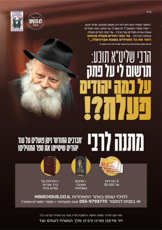 רוצה לחיות בעצמך ולהחיות בסביבתך התקשרות לרבי? ברצונך לסייע לפעילות ברוחניות ובגשמיות? יש לך צורך במענה מהיר?