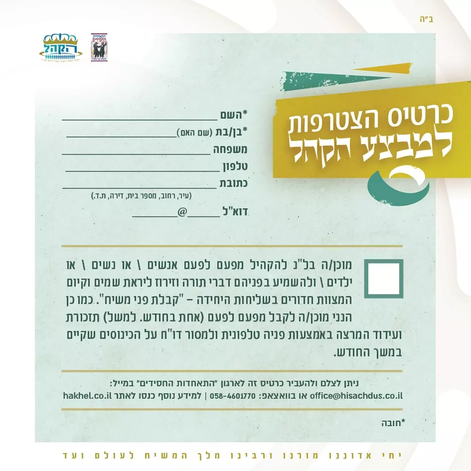 ע"פ בקשתו והצעתו של כ"ק אדמו"ר שליט"א מלך המשיח שכל אחד ימלא כרטיס הקהל,