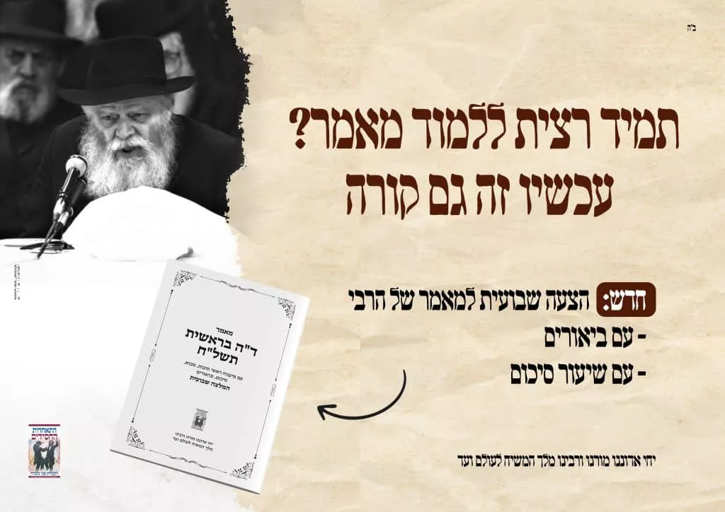 לקראת השנה החדשה, כאשר כל עם ישראל מתחיל את התורה מחדש, גם לך מגיע להתחיל את התורה מחדש, ובגדול! כל חסיד יודע את חשיבות לימוד המאמרים על-מנת להתקשר לרבי. 'הכתרתו' של הרבי נעשית במאמר!