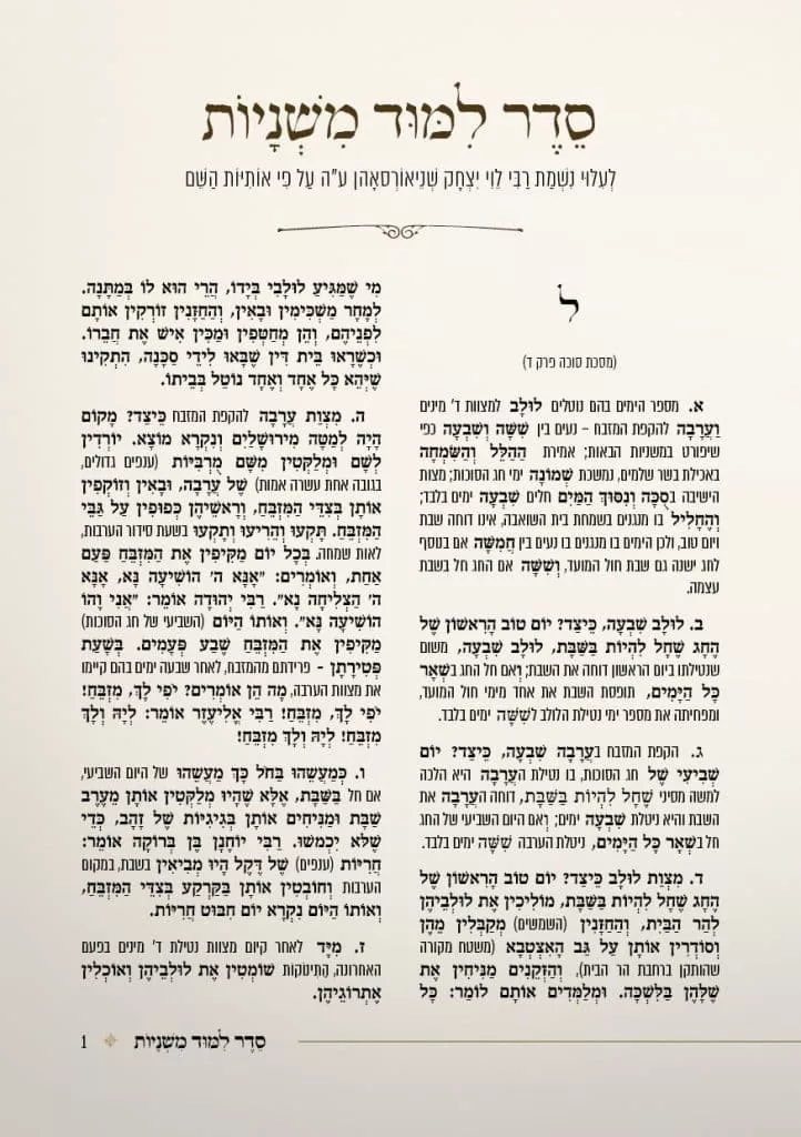 פרקי משניות לעילוי נשמת רבי לוי יצחק שניאורסאהן זצוק"ל אביו של – יבלחט"א – כ"ק אדמו"ר מלך המשיח שליט"א